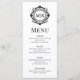 Verzierte florale Monogram Wedding Elegant Schwarz-weiß Menu beinhaltet Ihre personalisierten mit Monogramm Initialen in eleganter Schrifttyp-Schrift, umgeben von einem Zierrahmen mit Blumenmuster und eigenem Textüberlagern. Fügen Sie Ihrem Hochzeitsessen eine Touch Stil und Eleganz hinzu. Erstellt von Evco Studio www.zazzle.com/store/evcostudio
