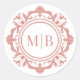 Verzierte florale Monogramm Hochzeit Elegante Rose Runder Aufkleber