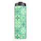 Verzierte grüne und weiße Fliesen Thermosbecher