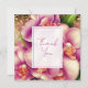 Spielvolle Orchideen in Blüte bieten eine verzierte, sogar romantische Anziehungskraft für diese personalisierten Hochzeitsdankkarten. In den warmen, romantischen Farbtönen finden Sie lila Pflaumen, Champagner, Elfenbein und grüne Farbtöne. Fügen Sie Ihre spezielle Nachricht auf der Rückseite hinzu. Verwenden Sie die Vorlage zum Personalisieren.