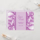 Spielvolle, fast skurrile Orchideen in Blüte bieten einen verzierten Anziehungspunkt für diese Hochzeit speichern die Daten. Features lila und Pflaumenfarben. Die Vorderseite der Karte hat "Save the Date" mit dem Namen des Ehepaares und dem Datum der Zeremonie. Auf der Rückseite der Karte befinden sich auch der Name des Ehepaares und das Datum der Hochzeit sowie die "Offizielle Einladung zum Verfolgen der Hochzeit". Sie können auch Ihr gewünschtes Foto auf der Rückseite hinzufügen. Verwenden Sie die Vorlage zum Personalisieren.