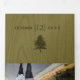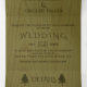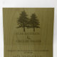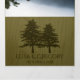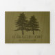 Rustikale Hochzeit von Tri-Fold Einladung auf Olivenbaum mit Nadelbäumen. Eine elegante rustikale Hochzeit im Herbst, die zwei Nadelbäume im Reliefstil auf der Vorderseite und die Namen des Ehepaares in einem dekorativen Schriftart zeigt. Ein Foto des Ehepaares bedeckt den Außenbereich.