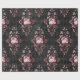 Rosa und schwarz geblümte Geschenkpackung mit Harlequin-Muster.