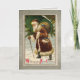 Sanftes und nostalgisches Bild des Weihnachtsmannes, das Geschenke im Schnee mit kräftigen Farben und verziertem Maßrahmen liefert. Inside hat wiederholtes Design und anpassbaren Text.