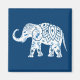 Ethnische Kunst quadratischer Magnet mit dekorativen Henna Tattoo-Stil Elefant auf dunkelblauem Hintergrund. Option zum Anpassen der Hintergrundfarbe.