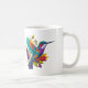 Verziertes Kolibri-Design in mehrfarbigen Farbtönen, umgeben von Flora