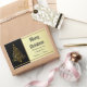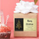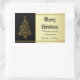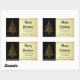 Elegante Weihnachtsaufkleber in Gold und Schwarz, mit einem verzierten Weihnachtsbaum dekoriert, um mit Ihren Grüßen zu personalisieren.