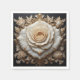Ein faszinierendes Blumenwerk mit einer zentralen Elfenbein-Rose, umgeben von verzierten goldenen Motiven auf dunklem Hintergrund, symbolisiert Eleganz, Luxus und Kunst.