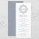 Das verzierte florale Monogram Wedding Elegant Silver Menu beinhaltet Ihre personalisierten mit Monogramm Initialen in eleganter Schrift-Typografie, umgeben von einem Zierrahmen mit Blumenmuster und eigenem Texteüberlagerungsrahmen. Fügen Sie Ihrem Hochzeitsessen eine Touch Stil und Eleganz hinzu. Erstellt von Evco Studio www.zazzle.com/store/evcostudio