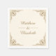 Elegante Servietten aus Hochzeitspapier mit einer verzierten goldenen Rahmen auf cremefarbenem Hintergrund.