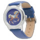 Kinderuhr aus Edelstahl mit blauem Lederarmband