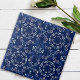 Elegante verzierte Zierfliesen im mediterranen Stil mit einem nahtlosen Muster aus blauen und weißen Ornamenten.