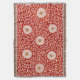 Rotes Blumenmuster aus dem Buch "Beispiele für chinesische Ornamente" von Owen Jones aus dem Jahr 1867. Das Kunstwerk ist ein lebendiges, kompliziertes Muster mit einem reichen roten Hintergrund. Es zeigt große, weiße Blumenmotive mit detaillierten symmetrischen Blütenblättern. Die Blume sind durch elegante, wirbelnde Ttendrillen miteinander verbunden, die ein Gefühl des Durchflusses durch das Stück schaffen. Um die Blume herum gibt es zahlreiche kleine, dekorative Kulissen, die das verzierte Design verstärken. Die Ästhetik ist dekorativ und harmonisch, mit einem Gleichgewicht zwischen den größeren Blumenelementen und den komplizierten, kurbelnden Mustern.