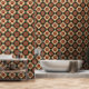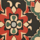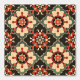 Dieses Kunstwerk präsentiert ein kompliziertes Medaillonenmuster mit symmetrischen blumigen und geometrischen Motiven. Das Design ist reich an Details und zeigt ineinander greifende Formen in einer harmonischen Farbpalette aus warmen Rottönen, sanften Cremes und gedämpften Grüntönen vor schwarzem Hintergrund. Die sich wiederholende und ausgewogene Anordnung der Elemente schafft ein Gefühl von Ordnung und Eleganz, das an klassische Fliesendesigns und Zierkunstwerke erinnert. Die Kombination aus kühnen Farben und komplexen Mustern verleiht der Gesamtkomposition ein visuelles und tiefes Interesse.