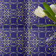 Das exquisite Design der Keramik-Kacheln zeigt ein tadellos gefertigtes Muster, das mit der Nachahmung von Golddekorationen verziert ist, Set vor einem reichen marineblauen Hintergrund.