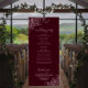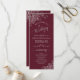 Dieses wunderschöne Hochzeitsprogramm zeichnet sich durch ein elegantes Design aus, das auf einem bordeauxroten Hintergrund mit hellgrauem Imitat und in den Ecken mit silbergrauen Folienrollen und Wirbel besticht. Die Titel sind in extravaganter Skriptkalligraphie geschrieben, und es gibt Platz für Ihre Zeremonie und Hochzeitsfeier Details, sowie ein kurzes Dankeschön für Ihren Gast. Ein wunderbarer Weg, um Ihre Freunde und Familie zu Ihrer Hochzeitsfeier zu begrüßen.