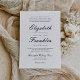 Diese klassische formelle Hochzeitseinladung enthält traditionelle Texte in elegantem Schwarz-Script und kleine Hauptstadt-Schriftart auf weißem Hintergrund. Das Gegenteil ist schwarz.