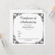 Echtheitskarte für Kunst mit einem verzierten Vintagen Stilrahmen.
