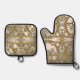 Wunderschönes Verziertes Weißes Ofen Mitt & Pot Holder Set