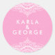 Verziertes weißes Spitzen- und rosa Herzmuster Runder Aufkleber