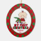 Kennzeichnet erste Verzierung des Babys Weihnachtsein niedliches Strichmännchenbabymädchen mit Stechpalmen-Set auf einer roten u. grünen Polka punktierter Hintergrund! Personifizieren Sie mit Ihren Babyinformationen und Datum und Sie sind alles Set, zum zu gehen! Wunderbares datiertes Andenkengeschenk für das 1. Weihnachten Ihres Babys.