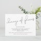Ein großes Ereignis wie Ihre Hochzeit zu verschieben, kann stressig sein, aber mit dieser modernen und minimalistischen Änderung der Pläne Template Card können Sie trotzdem stilvoll aussehen. Es steht "Planwechsel" in handgeschriebenem Skripttext oben, gefolgt von Ihren Veranstaltungsinformationen und Bedauern.