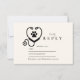This graduation party design is created especially for a veterinarian graduate, featuring a clean, minimalist layout with a stethoscope and paw illustration. The modern black-and-white style keeps the focus on the achievement while adding a subtle, professional nod to veterinary medicine.