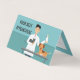 Kundenterminkarte für Tierärzte und Tierkrankenhäuser, um ihren Kunden bei der Buchung eine Zeit zu geben. Das Design zeigt Desteis Cartoon-Abbildung eines männlichen Tierarztes mit einigen Tieren. Der Mann trägt einen weißen Labormantel, während er eine graue Katze und einen Papageivogel vom Cockatieltyp hält. Ein niedlicher brauner Hund liegt auf einem Tisch. Es gibt Platz für Datum und Uhrzeit des nächsten Kundentermins. Auf der Rückseite befinden sich auch personalisierbare Textbereiche für einen Firmennamen und Informationen. Die Hintergrundfarbe ist blau.