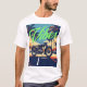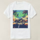 Diese bezaubernde Retro-Illustration erinnert an ein warmes, nostalgisches Gefühl mit einem klassischen schwarzen Motorrad, das auf einer Straße geparkt ist, die sich entlang großer Palmen und einem schönen Sonnenuntergang erstreckt. Der Himmel ist ein lebhafter Farbverlauf von orange und blau, mit alten Autos im Hintergrund geparkt. Grosser, hellgrüner "Vibes" Text erscheint prominent oben, was die entspannte und entspannte Atmosphäre verstärkt. Das Kunstwerk besticht durch seinen Vintagen Charme mit seinen klaren Linien und wunderschön kontrastreichen Farben, die sich perfekt für Reisende, Retro-Liebhaber oder diejenigen eignen, die ein fröhliches Küstenstreifen schätzen.