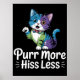 Diese auffällige Grafik zeigt eine fröhliche Cartoon-Katze mit auffallend segmentiertem Fell in Blau, lila und Grün, verziert mit einer mehrfarbigen, polka-gepunkteten Bug-Krawatte. Die Katze hat bezaubernd falsche Augen - ein Blau, ein Gelb - und einen glücklichen, offen gekleideten Ausdruck, mit einer Pfote spielerisch aufgezogen. Unterhalb des Felins liefert der fett gedruckte weiße Text eine ermutigende Botschaft: "Purr More Hiss Weniger", der sich für ein positives und friedliches Verhalten einsetzt. Kleine Bindestriche umgeben den Text, und das gesamte Design ist Set auf einem soliden schwarzen Hintergrund. Digitaler Download nur für den persönlichen Gebrauch.