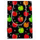 Handgemalte, lebendige Aquarelläpfel in Rot, Grün und Gold. Es ist mit weißen Apfelsamen betont und auf einem schwarzen, benutzerdefinierten Hintergrund dargestellt. Wählen Sie Ihre Lieblings-Hintergrundfarbe, falls gewünscht, und machen Sie das Muster groß oder klein, um diese Geschenktasche genau richtig für Sie zu machen. Spaß-Design für Apfelliebhaber oder sogar Lehrer für zurück in die Schule! Kombinieren Sie mit der Koordination von Papier und Band in meinem Shop, Paper Crow.