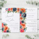 Elemente: lebendige Aquarellfarben und Grünpflanzen mit Namen in einem modernen, handgeschriebenen Stil. Farben: Blau, Marineblau, staubige blau, orange, Terrakotta, verbrannte sienna, rot, krümelig, grün. Themen: botanisch, elegant, chic, modern, romantisch, lässig, Garten, Herbst, Frühling, Sommer, draußen. Sammlung: Vibrant Blue Orange Red Botanical Wedding Collection. Art des Produkts: Einschließkarte