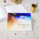 Dieses farbenfrohe Design zeichnet sich durch eine einzigartige Alkoholtupfer-Waschung in saphir-blauen und zitrusorangen Farbtönen aus. Lebhaftes Blue Orange Wedding Guest Book.