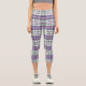Vibranly Purple und Green Scottish Tartan Pattern Capri Leggings