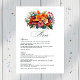 Genießen Sie die Hochzeitsfeier mit diesem floralen Fest-Menü in Aquarellen. Die lebhaften Blumenkunst und die festlichen Farbtöne ergänzen perfekt das in Mexiko inspirierte Fest-Hochzeitstil. Auf der Speisekarte finden Sie reichlich Platz, um köstliche Geschirr zu genießen, während Sie die Tischdekoration mit einer eleganten Touch bereichern. Beeindrucken Sie Ihre Gäste mit einem stilvollen Design, das die Freude und den Geist Ihres großen Tages verkörpert.