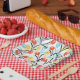 Vibranntes Tulip Muster Blumendesign auf Weiß Pappteller