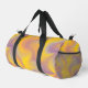 This duffle bag features a dynamic swirl of yellow, orange, purple, and pink tones, blending together in a smooth, fluid abstract pattern that feels energetic and modern.