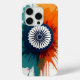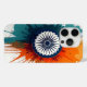Dieses iPhone-Gehäuse zeichnet sich durch ein einzigartiges, malerisches Design des Ashoka Chakra aus der indischen Fahne aus, umgeben von energetischen aquamarinen, orangen und braunen Farbtupfern. Das Chakra ist in der Mitte klar definiert, gerahmt von dynamischen, dynamischen Spritzern, die einen auffallenden visuellen Kontrast auf einem sauberen, weißen Hintergrund erzeugen.