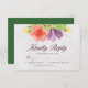 Diese elegante, blumengeschmückte Rsvp-Karte zeichnet sich durch lebhafte Blüten aus. Die Worte "freundlich antworten" in trendiger Schrift stehen auf einem hellen Marmorhintergrund auf der Vorderseite und auf der Rückseite in grüner Farbe. Personalisieren Sie es, indem Sie den Platzhalter-Text ersetzen. Für weitere Optionen, wie zum Beispiel den Schriftart zu ändern, ist es die Größe und Abstand zwischen den Buchstaben klicken Sie auf die Schaltfläche "Anpassen". *Bitte beachten Sie, dass das Zazzle-Wasserzeichen, das in der Zoomvorschau angezeigt wird, NICHT auf dem gedruckten Endprodukt erscheint. © Rosewood and Citrus