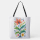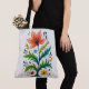 Carry your everyday essentials in beautiful, effortless style with this premium folk art shoulder tote bag. Designed with highly durable 100% cotton web handles for comfortable over-the-shoulder carrying, this bag is your perfect hands-free companion. The exterior is adorned with a stunning, highly detailed illustration of a symmetrical floral tree, featuring a vibrant orange bloom, lush green foliage, and delightful little wildflowers. The artwork is rendered in a nostalgic, naive style that perfectly captures the relaxed essence of cottagecore and bohemian aesthetics.