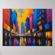 Vibrant City Street Night Painting Poster