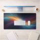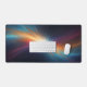 Supercharge your workspace or gaming battle station with a desk mat that radiates pure cosmic energy. This massive horizontal canvas flawlessly showcases a breathtaking abstract supernova explosion. The brilliant central starburst illuminates dynamic, sweeping bands of vibrant nebula gas in stunning shades of cyan, magenta, blue, and golden orange, all set against a deep, dark starry space background. It is a visual masterpiece of celestial power.