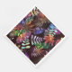 Bring the exotic to your table! This stunning paper napkin features a dense, seamless pattern of tropical leaves and foliage set against a dramatic dark background. The design bursts with rich, vibrant colors—including deep purples, teals, oranges, and greens—giving it a cool retro-bohemian or jungle-chic aesthetic. Perfect for tropical parties, outdoor summer events, cocktail hours, or modern entertaining.