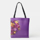 A bold, eye‑catching tote featuring a colorful bouquet of roses and lilies against a rich purple backdrop. Perfect for everyday errands, gifting, or adding a pop of floral charm to any outfit.
