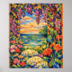 Step into a dreamy coastal paradise with this vibrant floral ocean sunset artwork. Bursting with bold, saturated colors and lush botanical details, this piece captures a glowing seaside horizon framed by cascading blossoms and tropical foliage. The radiant sky reflects across shimmering water, creating a peaceful yet energizing scene that feels both whimsical and serene. Perfect for nature lovers, color enthusiasts, and anyone wanting to bring a joyful, artistic escape into their space. Ideal for wall art, stickers, phone cases, notebooks, and more.