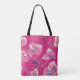 This bold floral pattern features delicate white and pink blossoms contrasted with elegant royal blue details, all set against a vivid pink background. The design captures the essence of modern botanical art—fresh, expressive, and full of life. Perfect for those who love colorful, feminine, and eye-catching floral aesthetics that radiate energy and creativity.