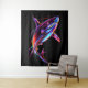 Vibrant Neon Shark Modern Digital Ocean Wandteppich