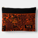 This vibrant cosmetic pouch features a bold abstract floral pattern in striking orange and black, bringing style and personality to your everyday routine.