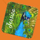 Vibrant Peacock + Name Bright Blue Green Feathers Quadratischer Aufkleber