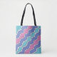 Ein fröhliches Zickzackmuster in lebhaftem Rosa, lila und Aqua, betont mit feinen weißen Linien für eine spielerische und moderne Touch.